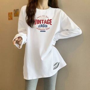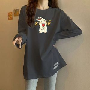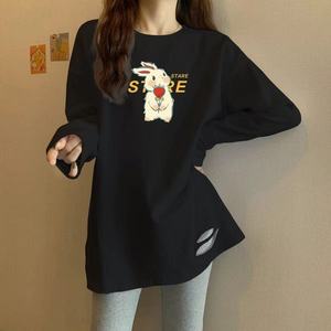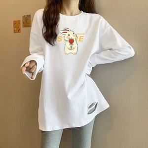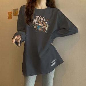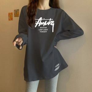 2025秋季新款上衣纯棉体恤女遮臀灰色打底衫长款长袖t恤女遮屁股