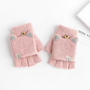 露指翻盖手套女冬季保暖学生儿童可爱针织毛线半指可触屏冬天卡通