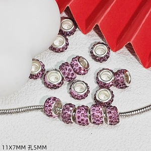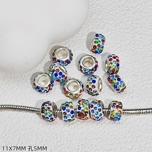 圆形三排软陶镶钻大孔珠彩色隔珠鸡眼钻球diy手工串珠手链饰品配