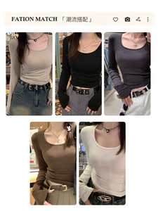 2025新款u领长袖t恤女秋冬修身辣妹内搭低领锁骨打底衫方领短上衣