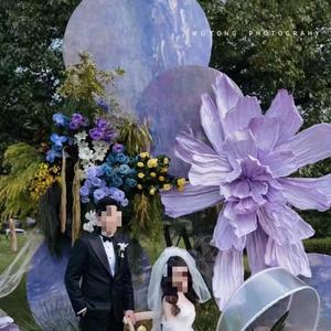 婚礼巨型纸花美陈道具婚庆大型纸花商场大型纸花背景手工褶皱纸花