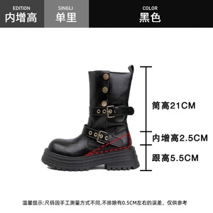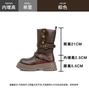 香港真皮厚底美拉德中筒靴女2025夏季新款时尚百搭西北穿搭马丁靴
