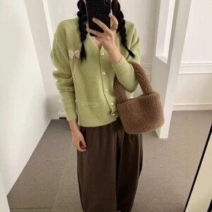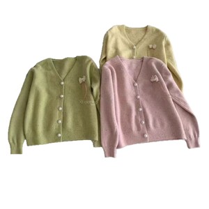 韩系温柔温柔风彩点V领针织开始女秋冬新款宽松慵懒气质百搭毛衣