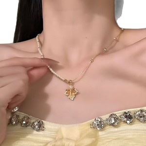 轻奢风秋冬款碎冰冰黄枫叶吊坠项链小众高级感精致气质百搭锁骨链