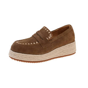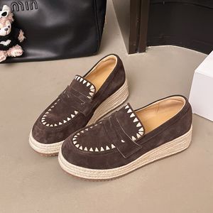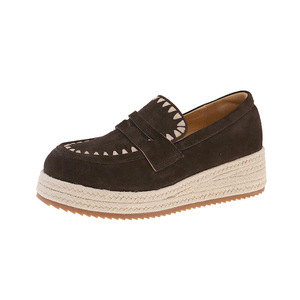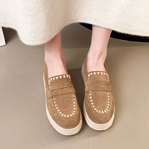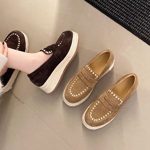 牛绒皮圆头乐福鞋女2025秋季新款松糕厚底麻绳复古风休闲百搭单鞋