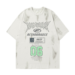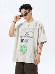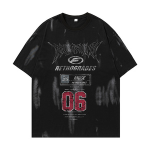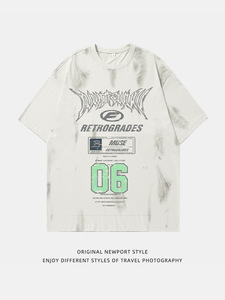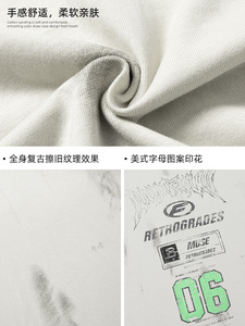 擦色做旧美式字母印花短袖T恤男2025夏季新款宽松纯棉半袖体恤衫q