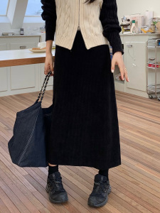 加绒灯芯绒A字半身裙女秋冬胖MM松紧高腰直筒裙子显瘦长裙纯色潮
