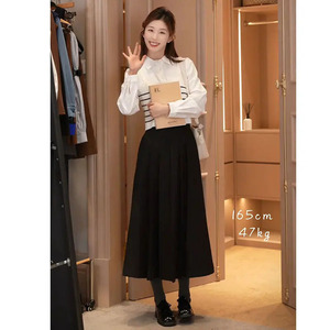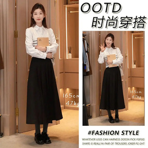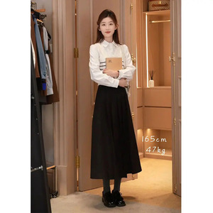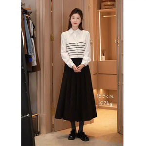 早秋女装2025新款法式拼接假两件条纹衬衫高级感a字半身裙两件套