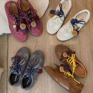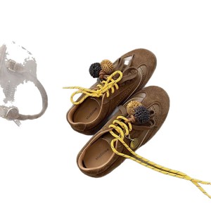 韩国增高3cm~时髦撞色鞋带圆头松果休闲德训鞋女秋2025新款休闲鞋