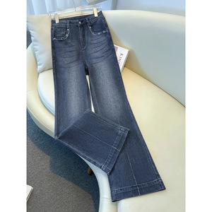 烟灰色牛仔微喇裤女2025新款秋季百搭时尚显瘦裤子高腰阔腿直筒裤