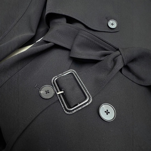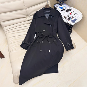 2025秋季新款简约时尚百搭翻领双排扣设计配腰带收腰修身风衣批发