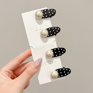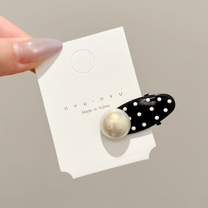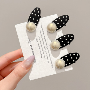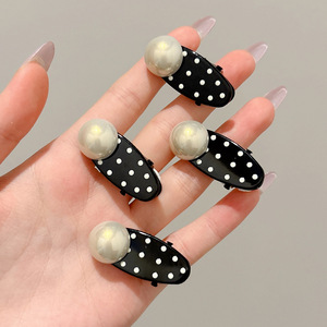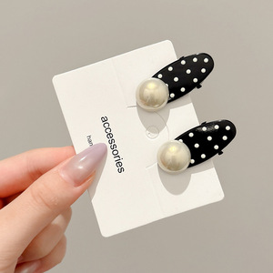 韩系黑白波点珍珠发夹对夹女鸭嘴夹前额刘海夹少女侧边一字夹头饰