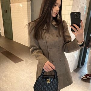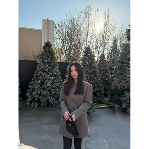 毛呢外套秋冬新款韩系高级感娃娃领加厚休闲中长款修身呢子上衣女