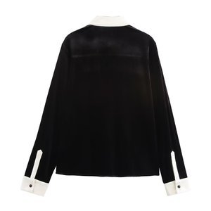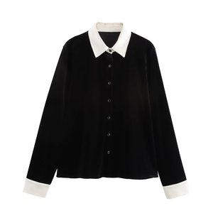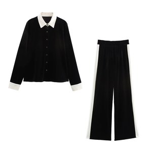 ZR外贸批发 欧美风女装 通勤风时尚气质百搭绒拼接开鹅绒衬衫长裤