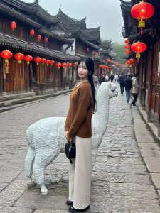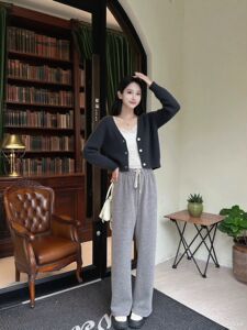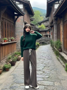 羊绒休闲裤裤绵羊毛加绒松紧腰桑蚕丝高腰显瘦加厚保暖外穿抽绳