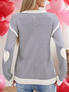 2025跨境秋冬亚马逊Temu热卖毛衣女撞色爱心桃圆领针织衫情人节款