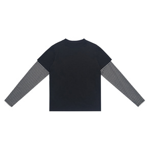 UNF 正肩合体假两件高智感穿搭条纹撞色圆领长袖T恤男女美式复古