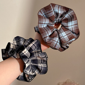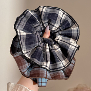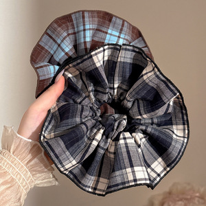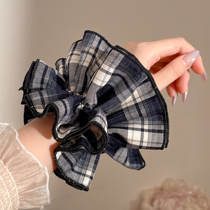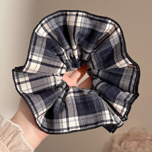 蓝色格子大肠发圈女气质丸子头皮筋发饰少女扎头发超大慵懒风头绳