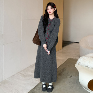 孕妇套装2025秋季新款时尚洋气孕期显瘦针织开衫外套半身裙两件套