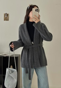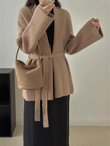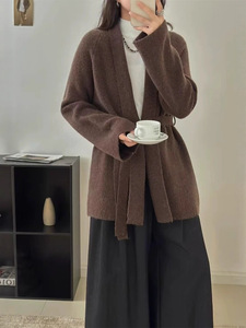 欧美风系带收腰针织衫毛衣女2025秋冬新款韩版宽松慵懒风开衫外套