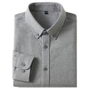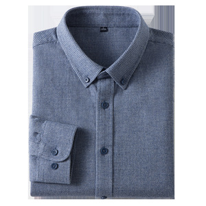 长绒棉衬衫男格纹商务休闲百搭寸衣保暖加厚男士磨毛翻领长袖衬衣
