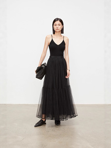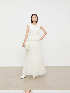 南油高端女装白色轻奢高级感法式纱裙半身裙高腰显瘦百搭A字裙子