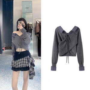 2025秋季新品可卸领口袖口一字肩交叉毛衫针织衫RL70601100