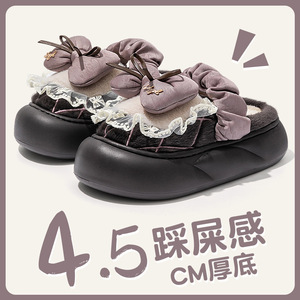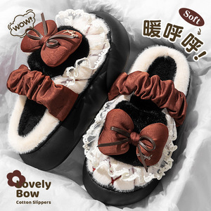 欧式蝴蝶结棉拖鞋女款2025新款秋冬季室内家居可爱毛毛绒棉拖女士