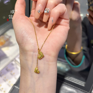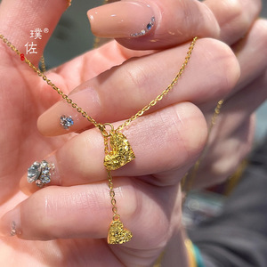 璞佐金店同款沙金锤纹碎碎冰爱心流苏项链女轻奢高级感百搭锁骨链