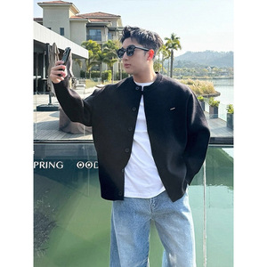 浅灰色棒球领毛衣开衫外套男秋天穿搭高级感痞帅宽松慵懒感针织衫