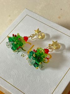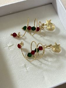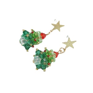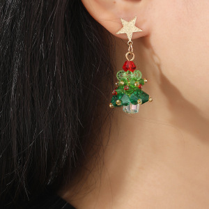 欧美新款彩色圣诞树耳环星星耳饰流苏耳钉甜美简约长款圣诞节配饰