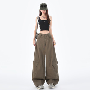 弯刀工装裤女2025年新款高腰显瘦宽松休闲多口袋阔腿镰刀拖地裤子