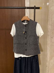 南油工厂25秋季新款日系粗花呢人字纹文艺风复古无袖坎肩马甲女