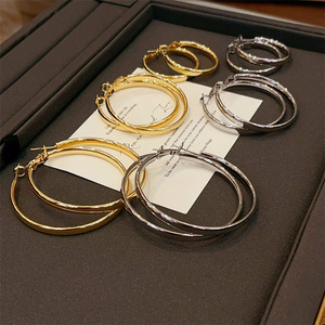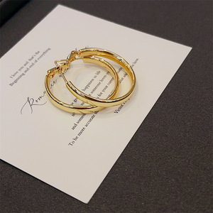 经典宽边光面素圈耳环女金属风气质百搭圆圈耳饰新款时尚通勤耳圈