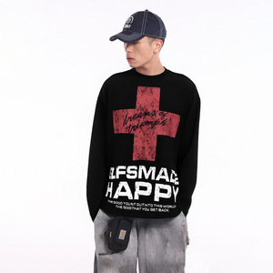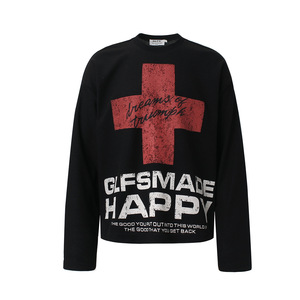 嘉衣库男装2025秋季新款美式街头潮牌机车风T恤长袖十字架卫衣男