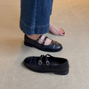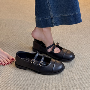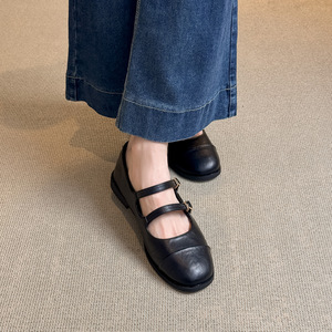 现货!法式平底芭蕾晚晚鞋 复古玛丽珍单鞋 圆头一字扣带大码女鞋