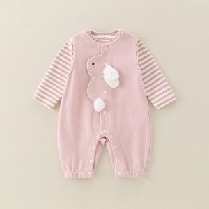婴儿春季分体套装女宝宝小兔连体背带裤条纹T恤春秋两件套外出服