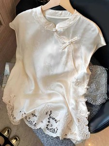 新中式镂空刺绣斜襟盘扣无袖衬衫女2025年夏季新款清冷感气质上衣
