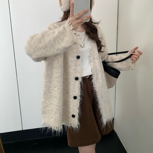 韩系设计感复古纯色针织开衫女秋冬新款气质长袖宽松软糯女装外套