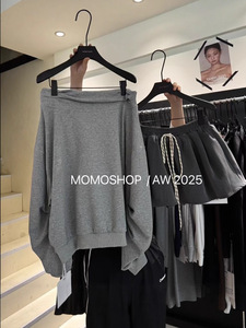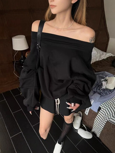 十三行2025早秋新款韩版时尚百搭显瘦斜肩长袖卫衣女宽松休闲上衣