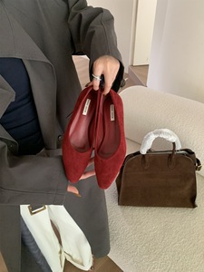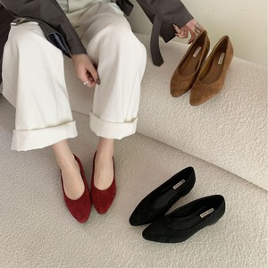 2025年法式复古反绒浅口单鞋女尖头低跟女鞋简约通勤时尚工作鞋女