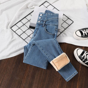 超高腰加绒加厚牛仔裤女秋冬2025新款显瘦百搭紧身弹力小脚长裤子