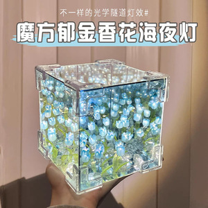 网红爆款郁金香小夜灯手工diy创意魔方立体花海氛围灯活动小礼物