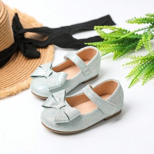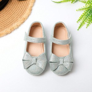 女童可爱甜美风纯色蝴蝶结装饰魔术贴平底鞋