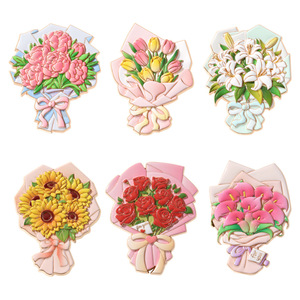 国庆献花冰箱贴合金磁吸郁金香向日葵玫瑰花牡丹百合精美纪念礼品