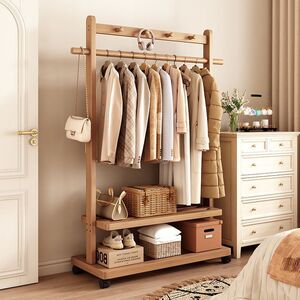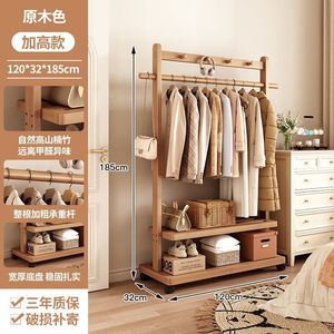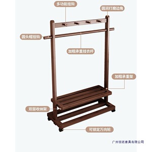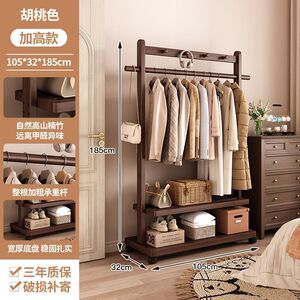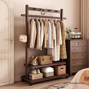 卧室简约家用挂衣架衣帽架实木移动衣架民宿客厅置物衣服落地中式