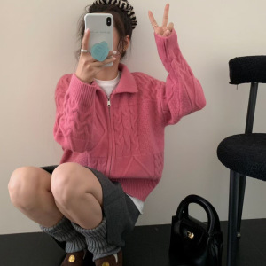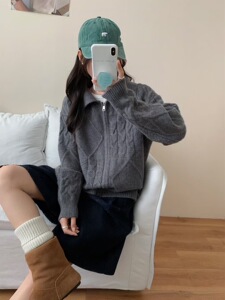 2025秋冬新款韩系针织开衫重磅复古风麻花简约优雅软糯气质毛衣女