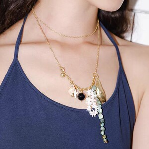 度假风海贝之舞项链时尚休闲黑玛瑙贝壳流苏吊坠小众设计款吊坠女