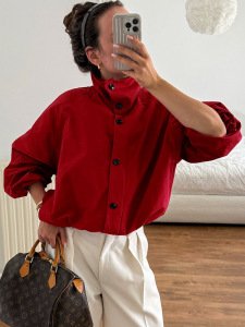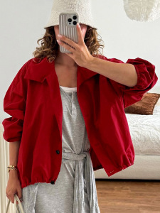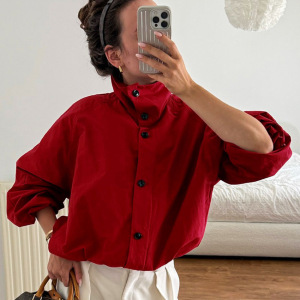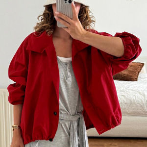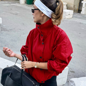 2025秋冬新款红色速干防风高领外套女设计感气质时尚欧美跨境通勤