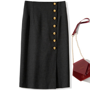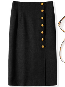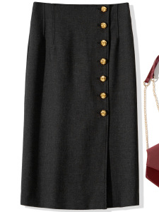 B2128 2025年秋装女装新款时尚金扣装饰侧开叉一步裙
